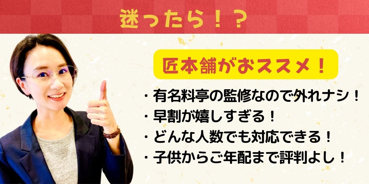 ここまでバラエティ豊かなおせちから選べるのは匠本舗だけ!「あの有名料亭の味を食べてみたい!」そんな願いを叶えてくれる通販サイトです。