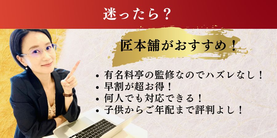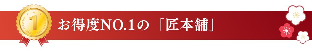ここまでバラエティ豊かなおせちから選べるのは匠本舗だけ!「あの有名料亭の味を食べてみたい!」そんな願いを叶えてくれる通販サイトです。